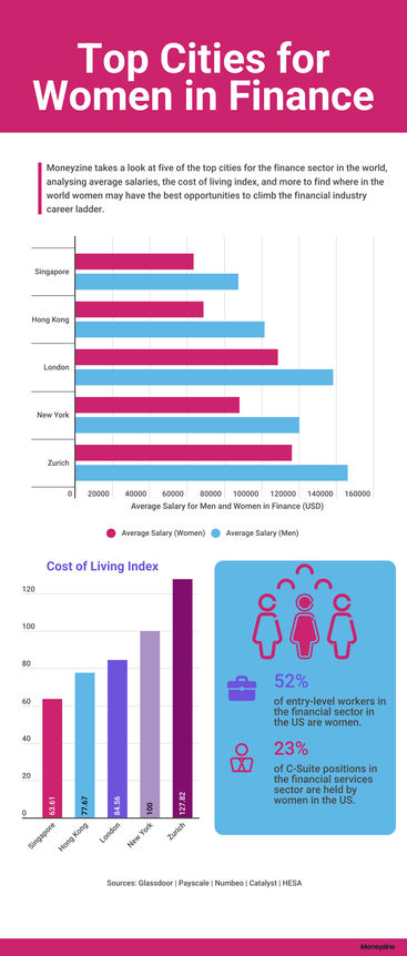 The highest average salary out of the cities reviewed for women in finance can be found in Switzerland, with the lowest in Singapore.