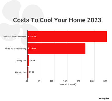 Ceiling fans aren’t often seen in the UK but for some homes, they can be a fantastic way of keeping rooms a bit cooler when the heat outside is unbearable. A ceiling fan is the second most economical way to cool your home, coming in at £5.40 per month.